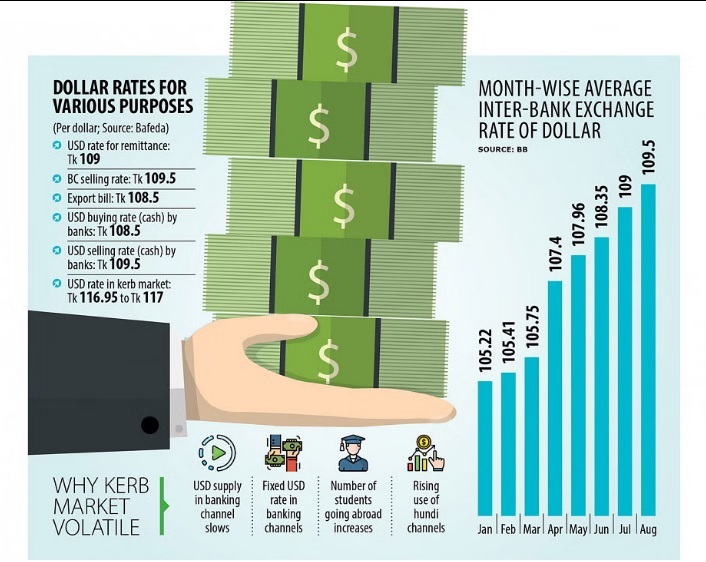 On August 1, they fixed an exchange rate of Tk 109 per dollar for remittances. A rate of Tk 109.50 was fixed for importers and Tk 108.50 was set for exporters.